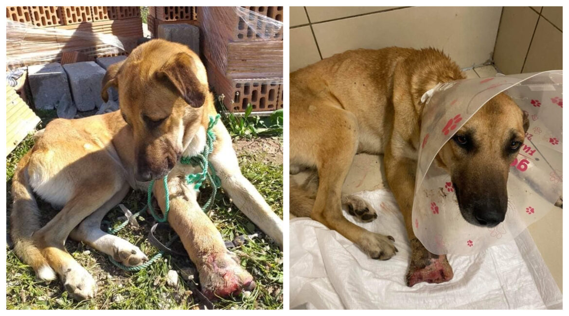 Δυστυχώς ο σκυλάκος είναι σοβαρά. Έχει πυρετό, οι φάλαγγες από το πόδι του λείπουν όλες και μέχρι και την ωμοπλάτη είναι γεμάτος φλεγμονές. Αυτό αποτρέπει το χειρουργικό του ακρωτηριασμό, όπως και επίσης ο χαμηλός του αιματοκρίτης.