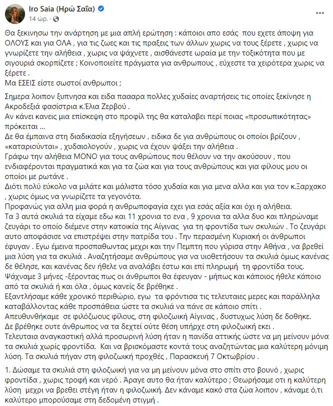 Η αρχική ανάρτηση της κ. Σαΐα