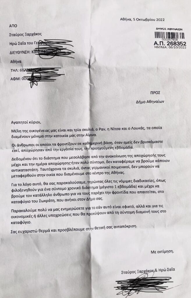 Φαίνεται όμως μετά από όλο αυτό που έγινε το ζευγάρι το ξανασκέφτηκε και επανέρχεται η κ. Σαΐα με νέα ανάρτηση. Στην ανάρτηση αυτή παρουσιάζει ένα χαρτί με το οποίο ζητούν από το Δήμο Αθηναίων να φιλοξενήσει προσωρινά-και συγκεκριμένα όχι πάνω από μία εβδομάδα- μέχρι να βρεθεί σπίτι για εκείνα.